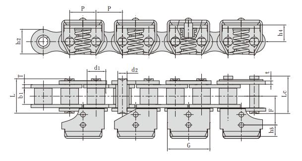 夾薄膜鏈條,夾膜鏈規(guī)格型號(hào)具體參數(shù)如下: