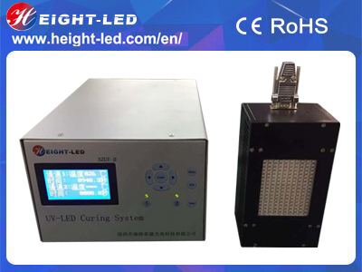 This is a high-performance UVLED  curing system, the system includes the controller, UVLED irradiation head and cable. UVLED head with imported high-intensity UV LED integrated UV spectral wavelength of 365nm, 385nm, 395nm, 405nm, the use of forced air cooling, the effective curing area of 75X50mm, support for external signal input and trigger, can be equipped with semi-automatic or fully automated production line .