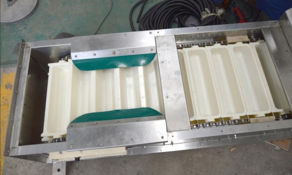 12AD1F66加長銷軸輸送鏈(見下圖)主要應用于料斗式提升機(見上圖),通過加長銷軸來固定料斗,然后通過鏈條傳動向上輸送。